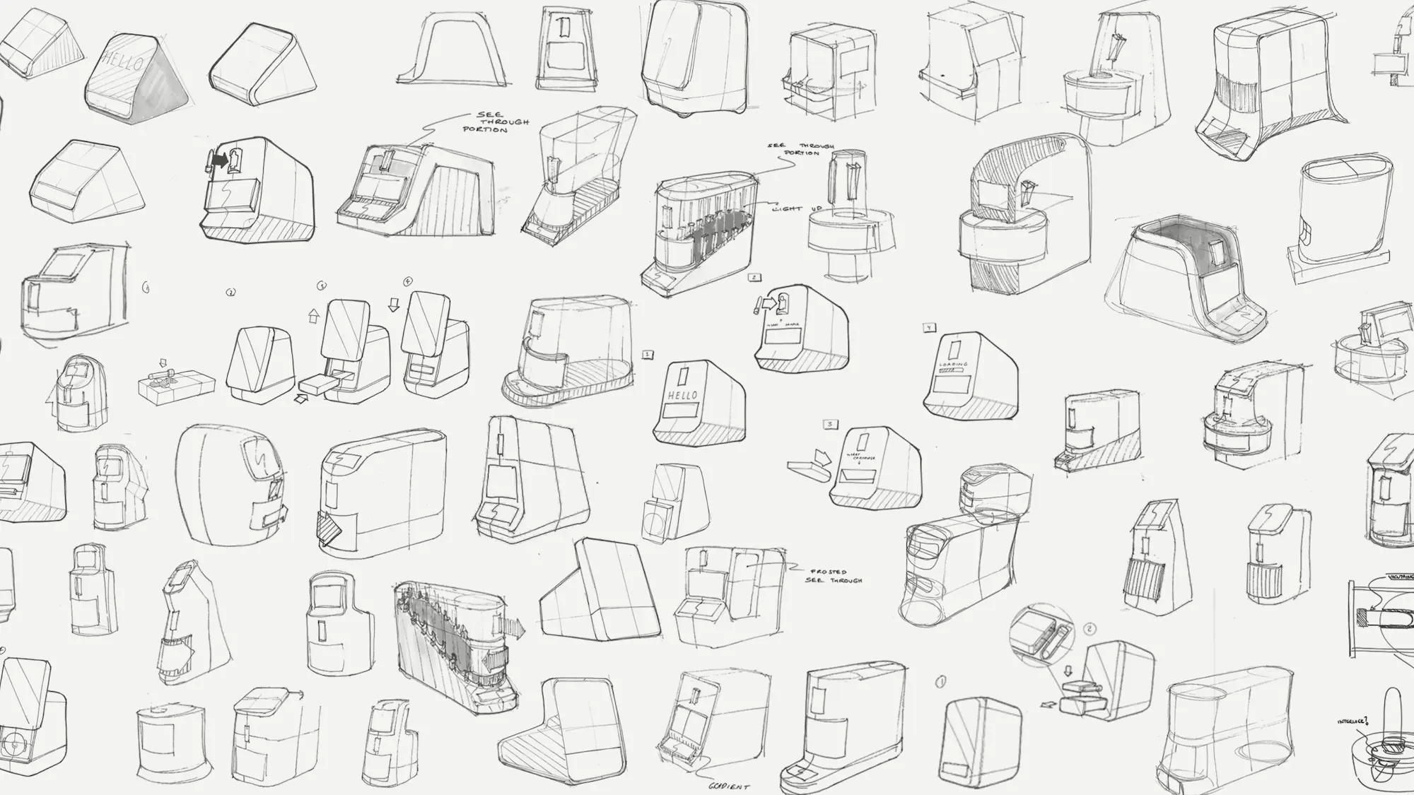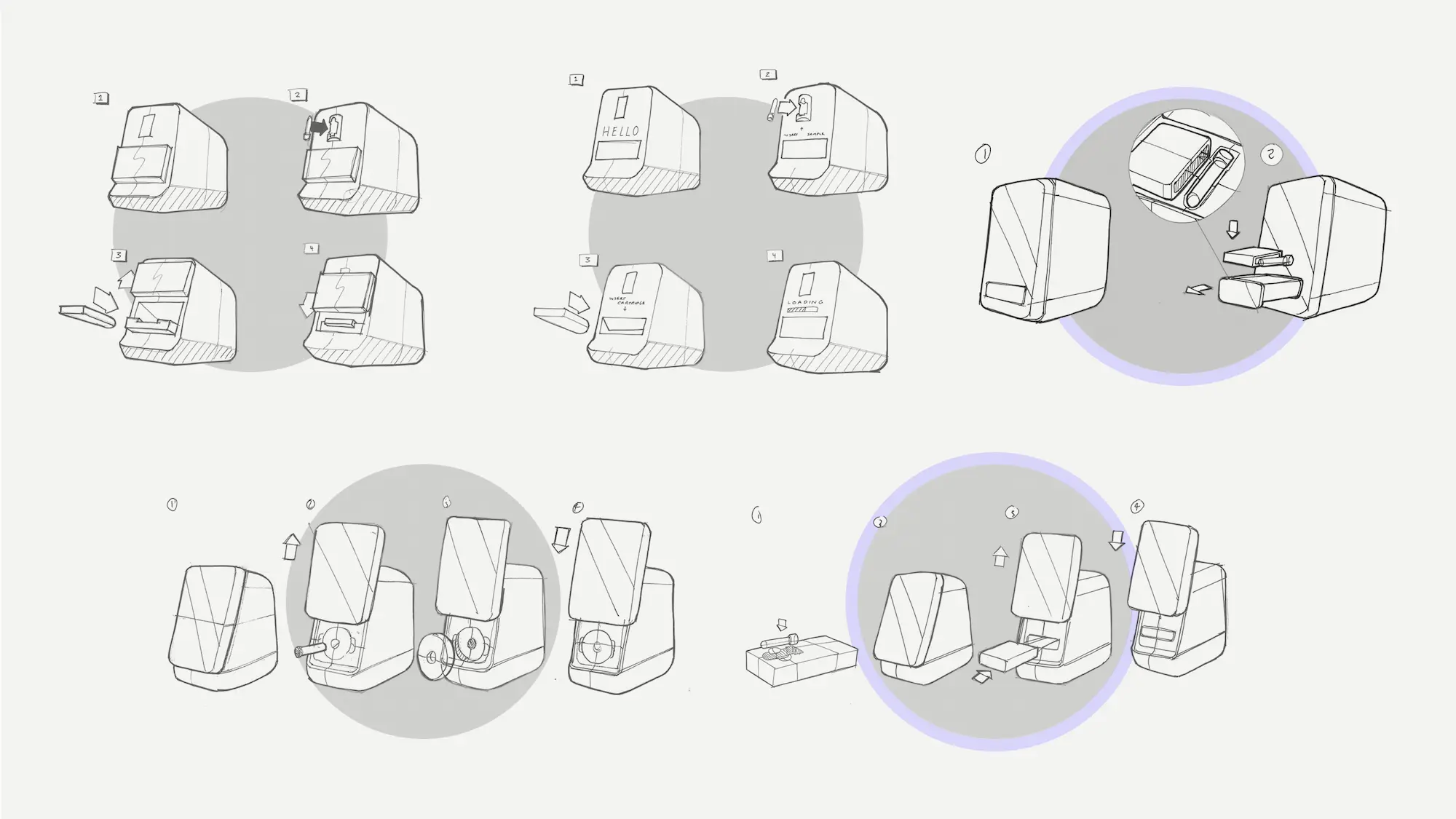 A couple chosen interactions between the user, cartridge and device were sketch modelled. This allowed us to quickly test some ideas.