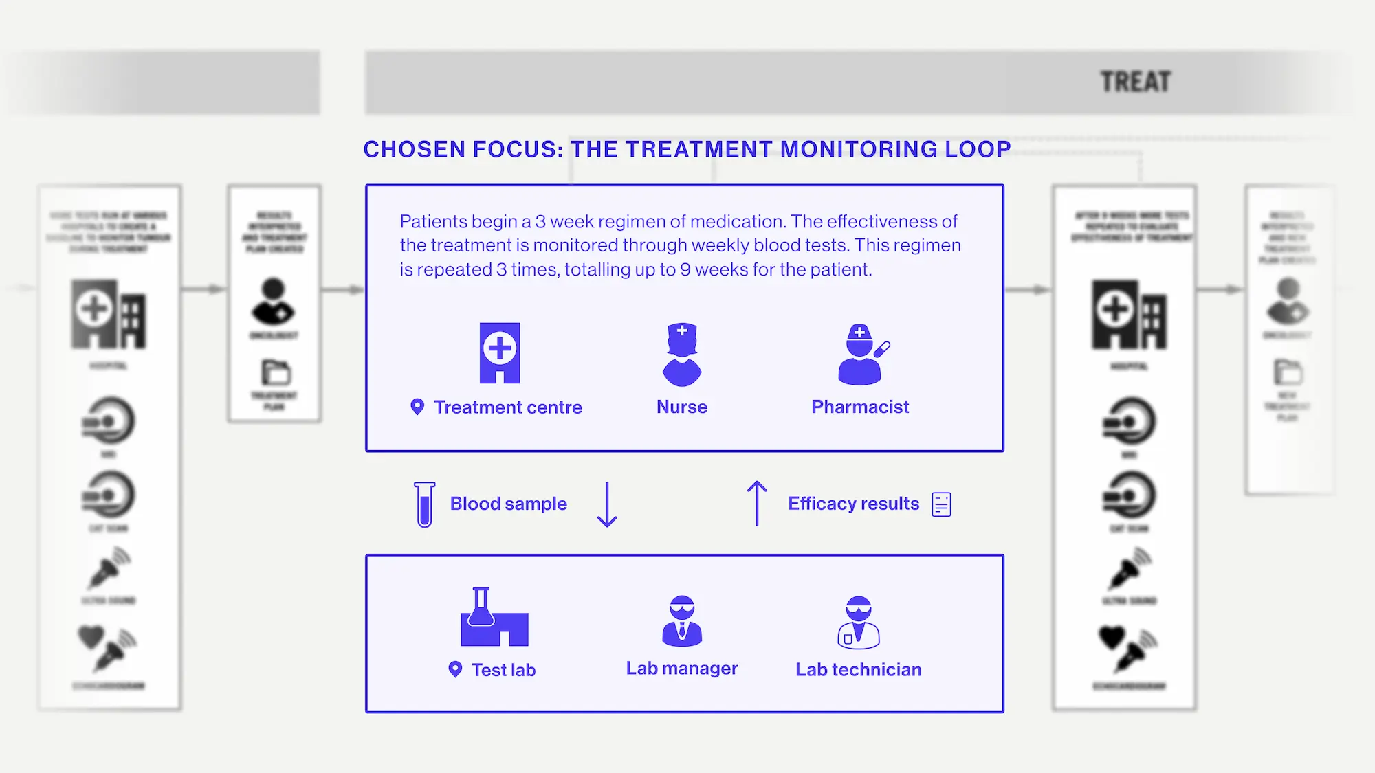 After analysing the entire cancer care pathway, it was decided that the treatment monitoring loop would be the chosen focus.