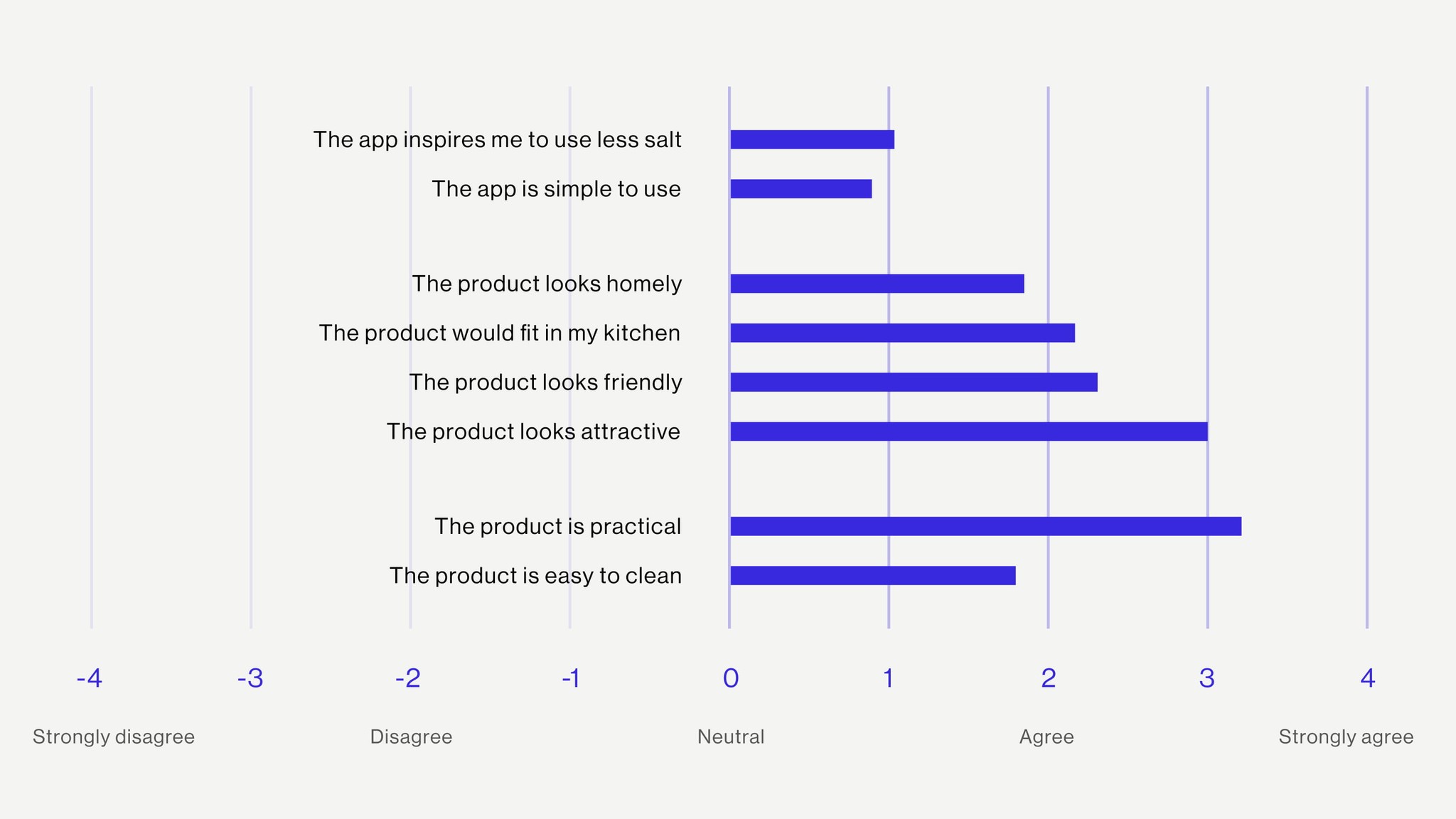 Remote testing was conducted via task evaluation and online interactive prototypes. This included analysis of the companion app. Bipolar semantic statements were taken and an average score for the results is shown below.