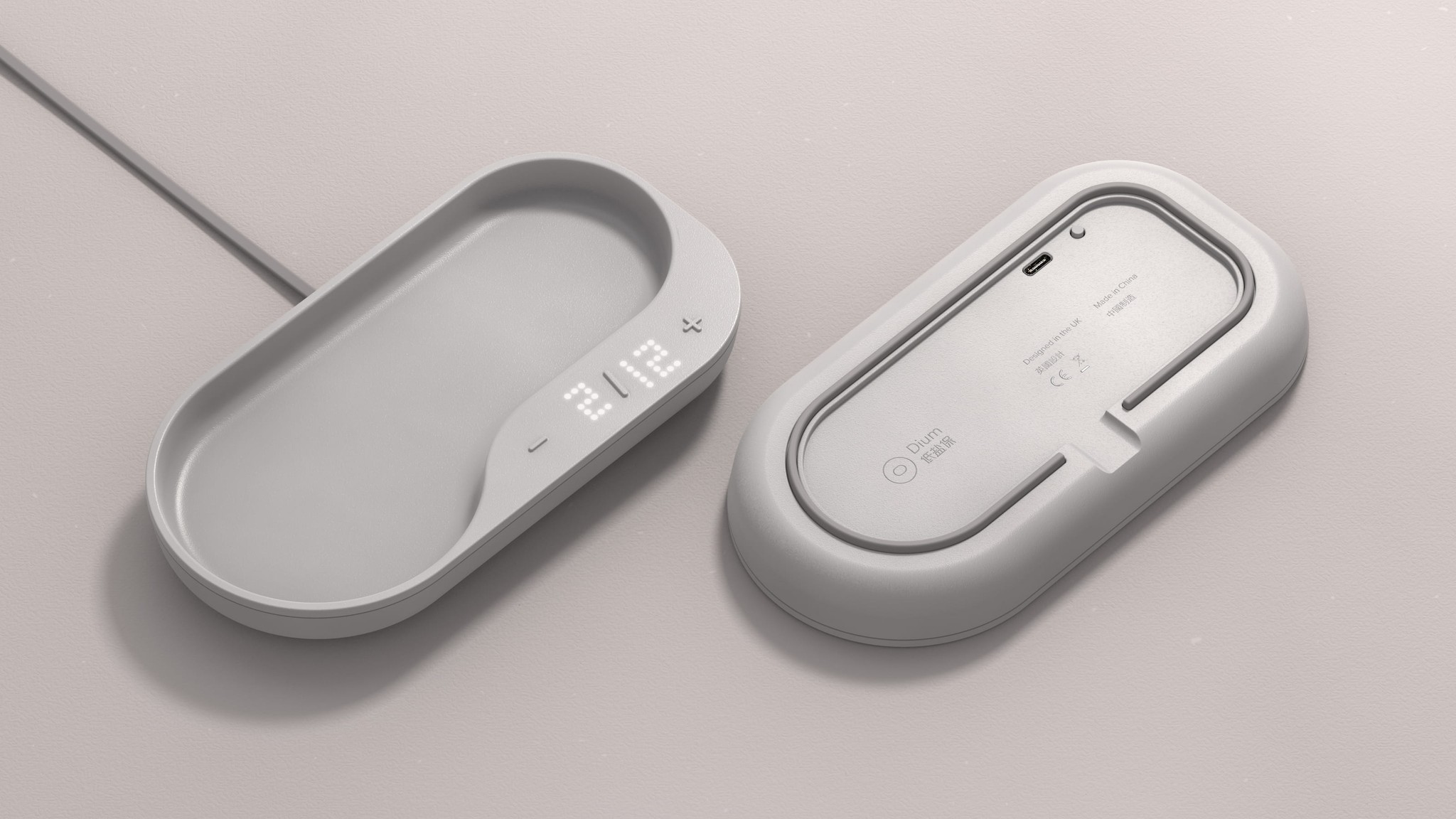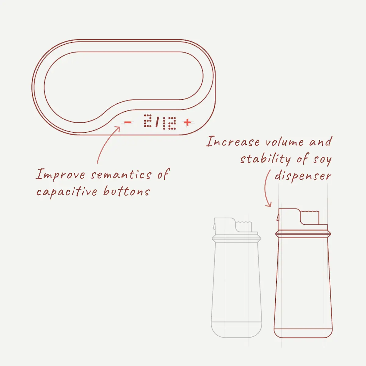 Users found the generically shaped buttons on the base confusing - to address this, “-” and “+” markers were added