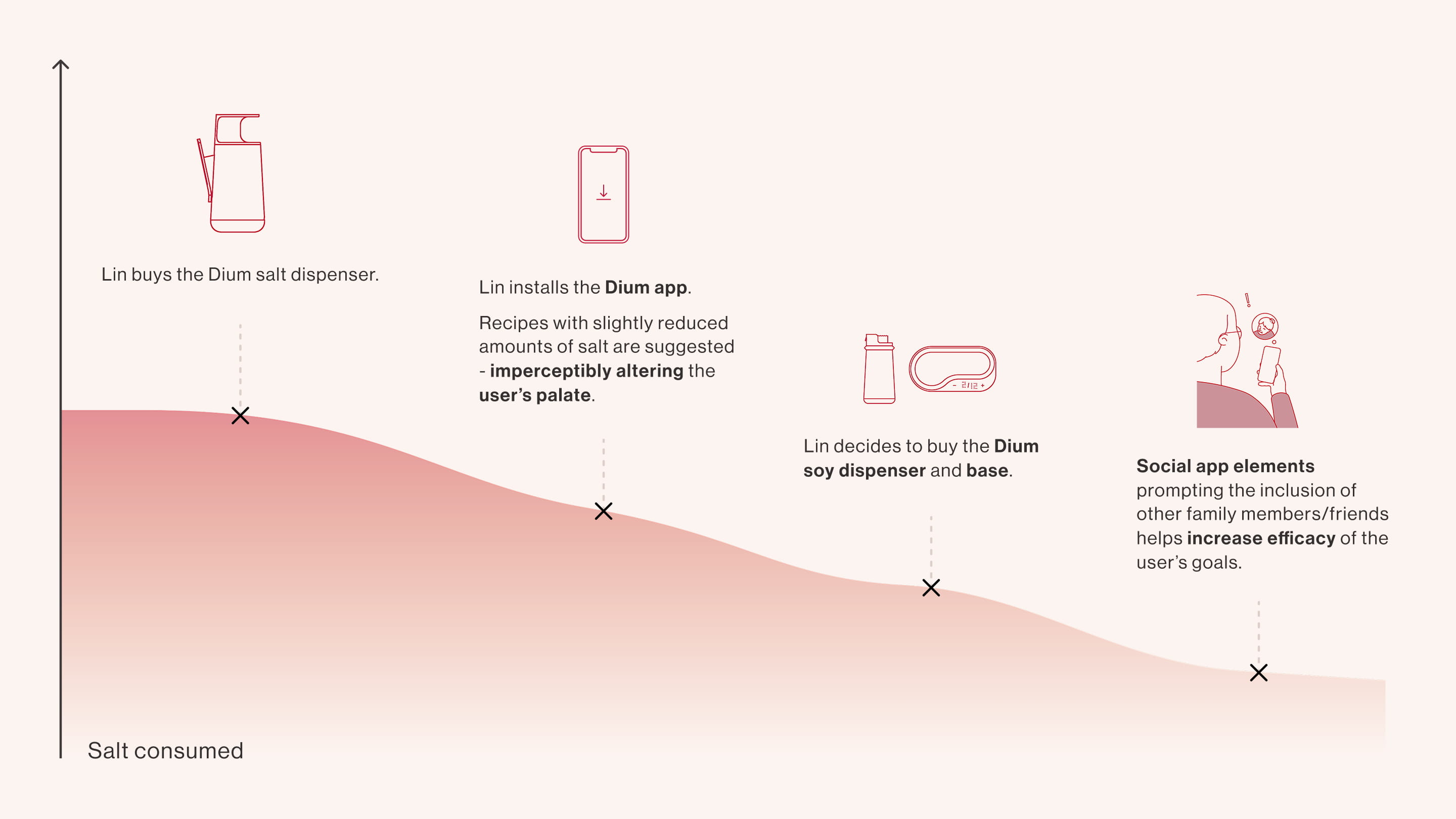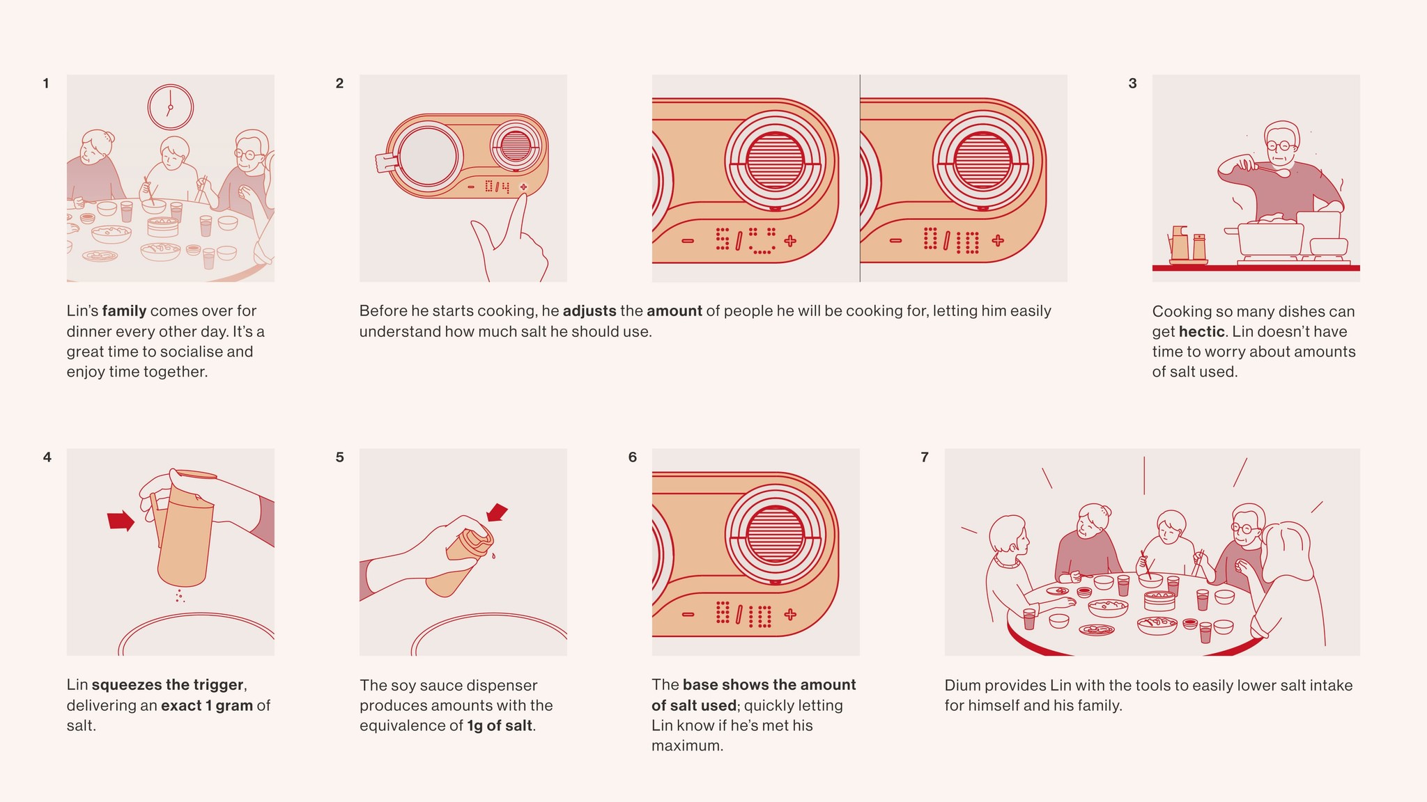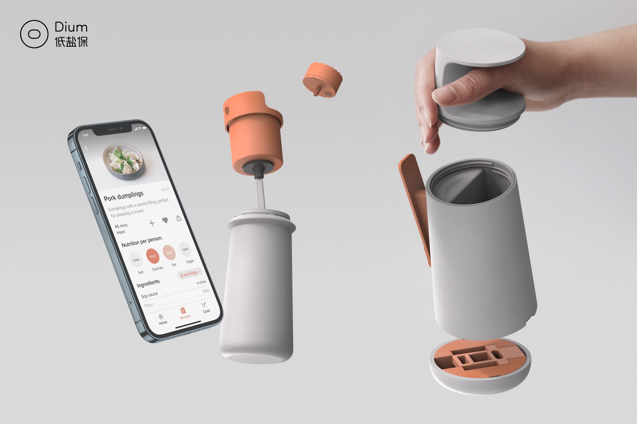 Dium is a kitchenware collection designed to help users and their families reduce salt intake in tandem with a companion app