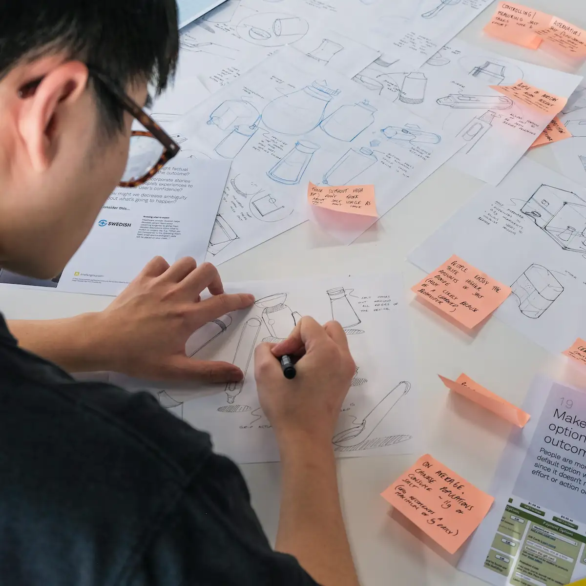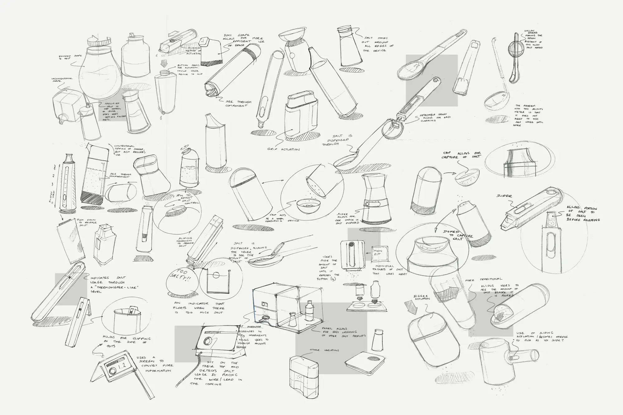 Further sketches to develop the salt and soy dispensers