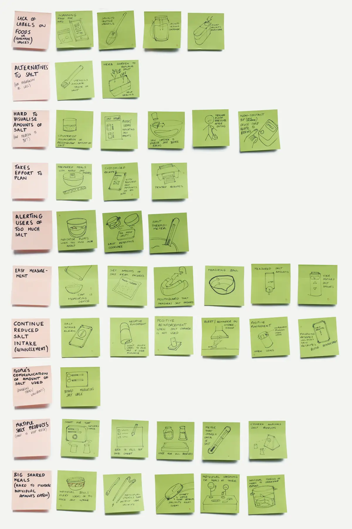 From the insights gained during interviews and ethnography, relevant “How might we” solutions were generated. This starting activity provided a nice variety of blue-sky approaches to the problem.