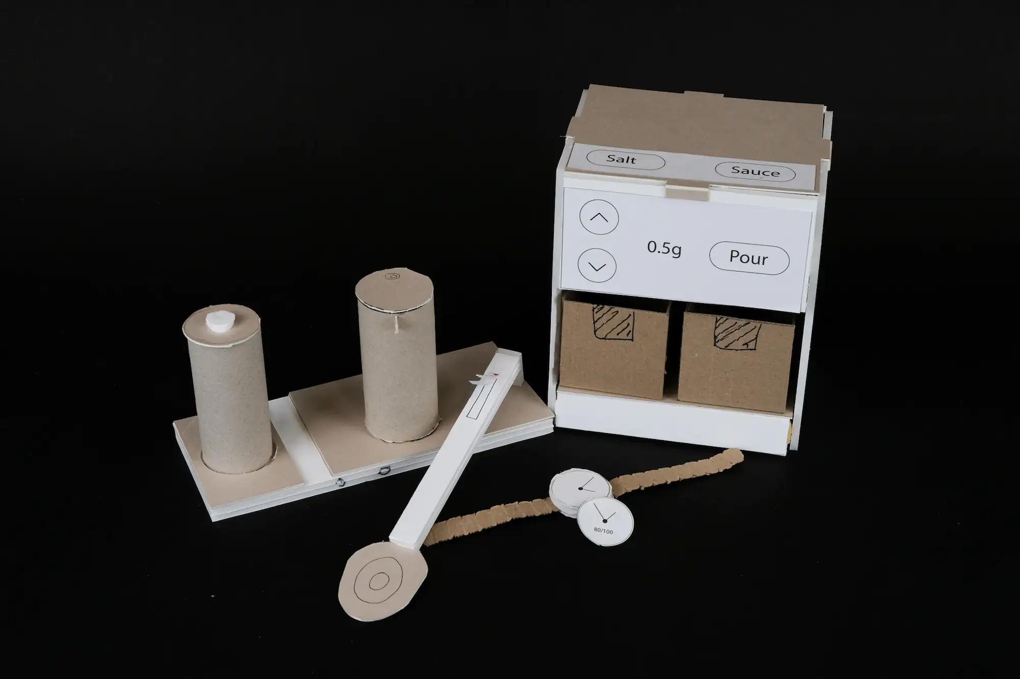 Working 3D printed models that product set amounts of salt and soy sauce