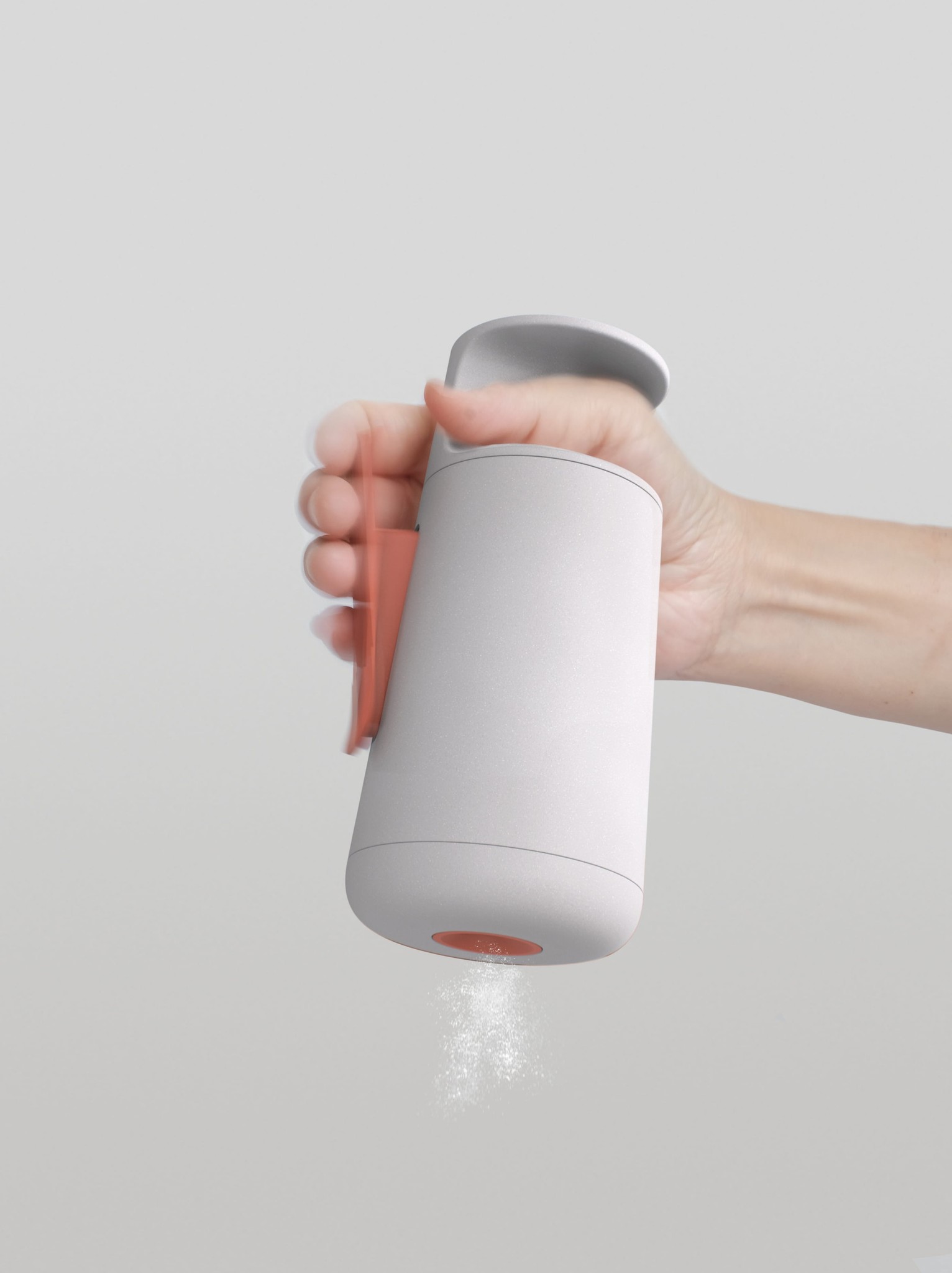 The one-handed grip and actuation of both the salt and sauce dispensers allows users, especially elders, to focus on their cooking