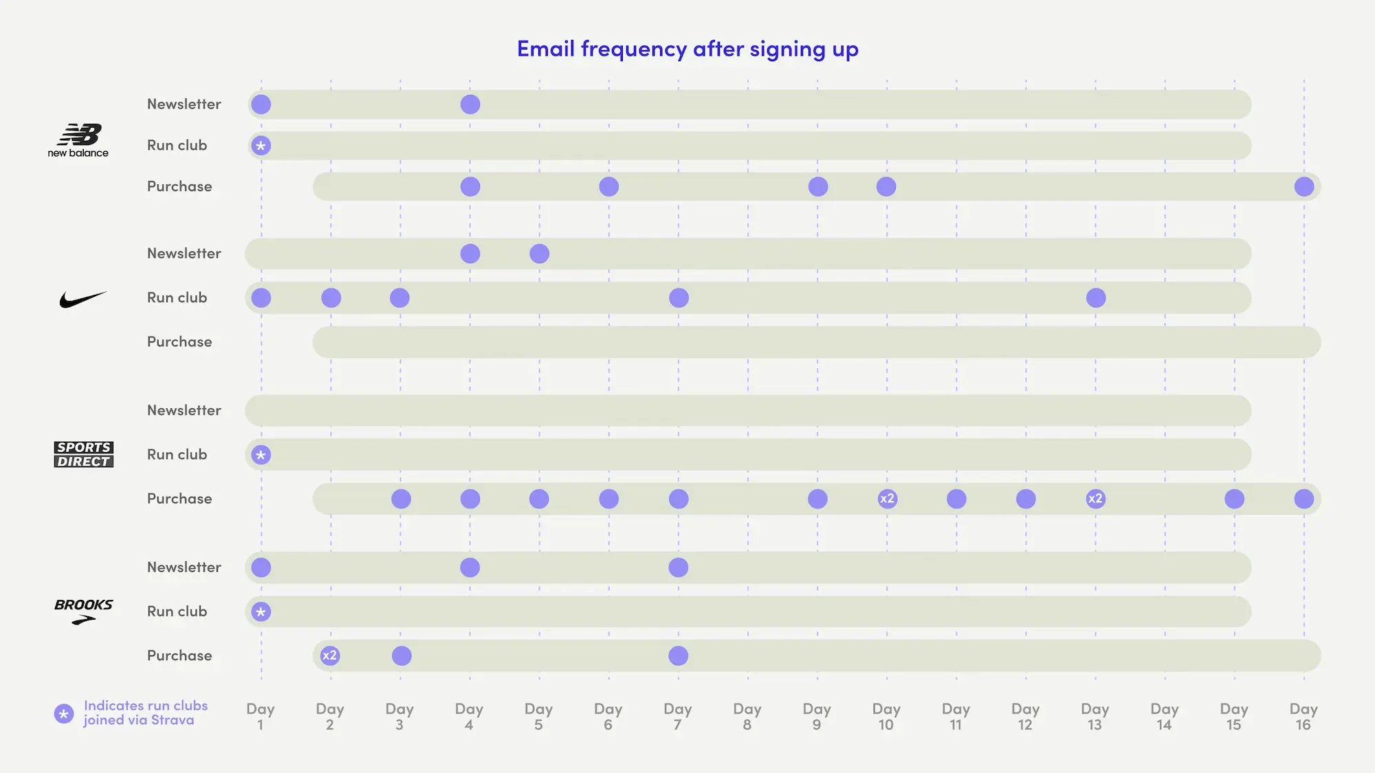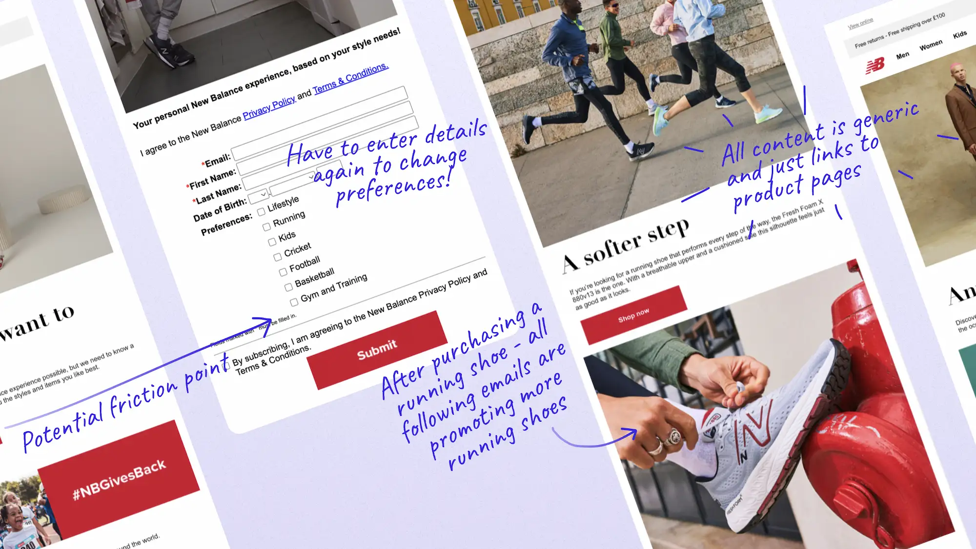 We conducted competitor analysis of email content, allowing New Balance to understand personalisation efforts used by other brands in newsletters, membership programmes and post-purchase messages.