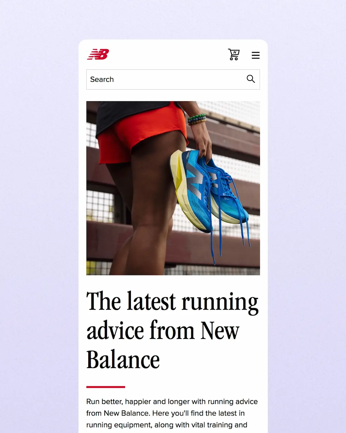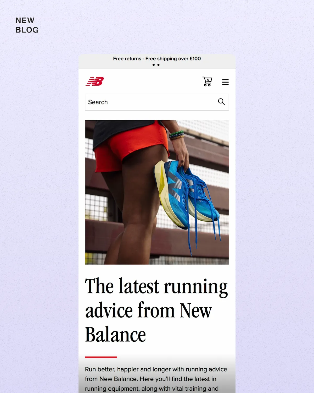 We recommended introducing a blog to the site to reinforce New Balance’s position as a leader in running. Additionally, well-crafted guides such as “What running shoe should you buy?” offer SEO benefits, driving organic traffic to the site.