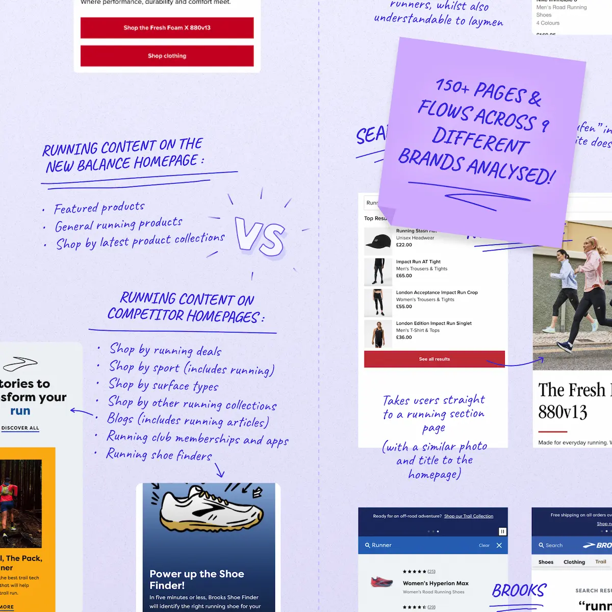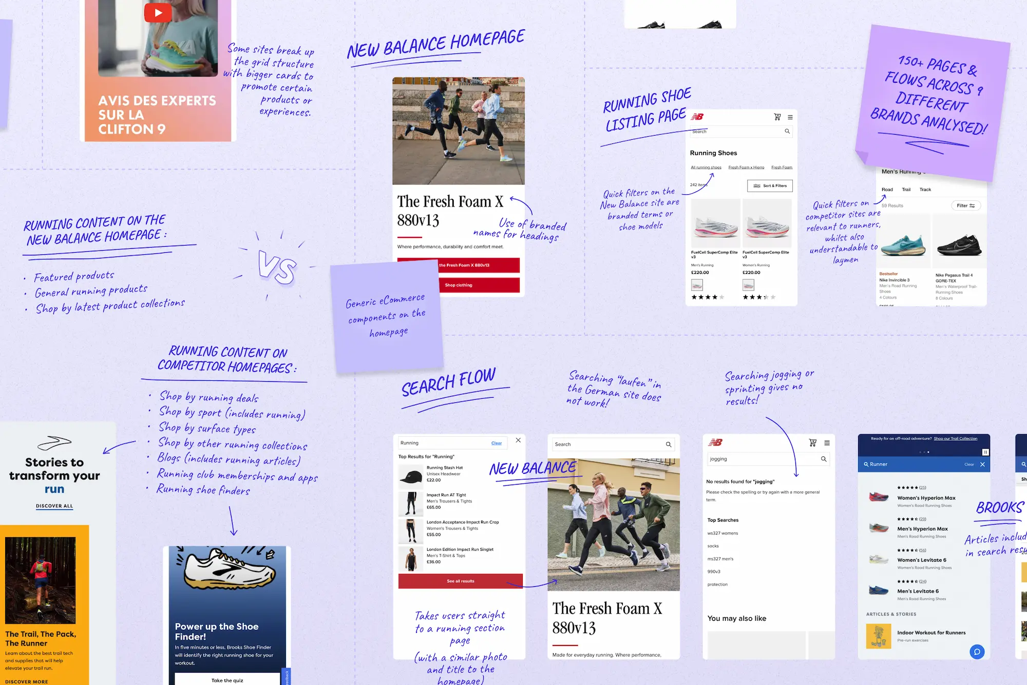 To address this, New Balance reached out to Tangent to conduct preliminary research and lay the groundwork for enhancing user experience and digital interactions for their running products online.