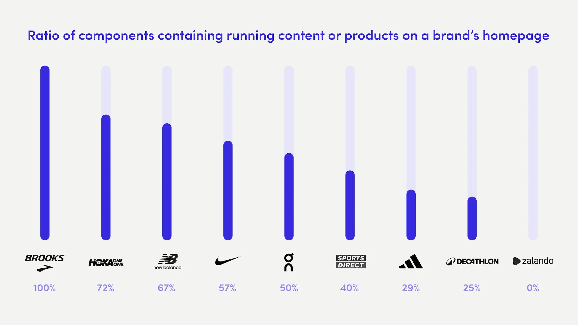 The review covered user interactions related to running, including navigation, homepage layout, product listings and search functionality. We also collected quantitative data on running-related content volume, filter options and more.